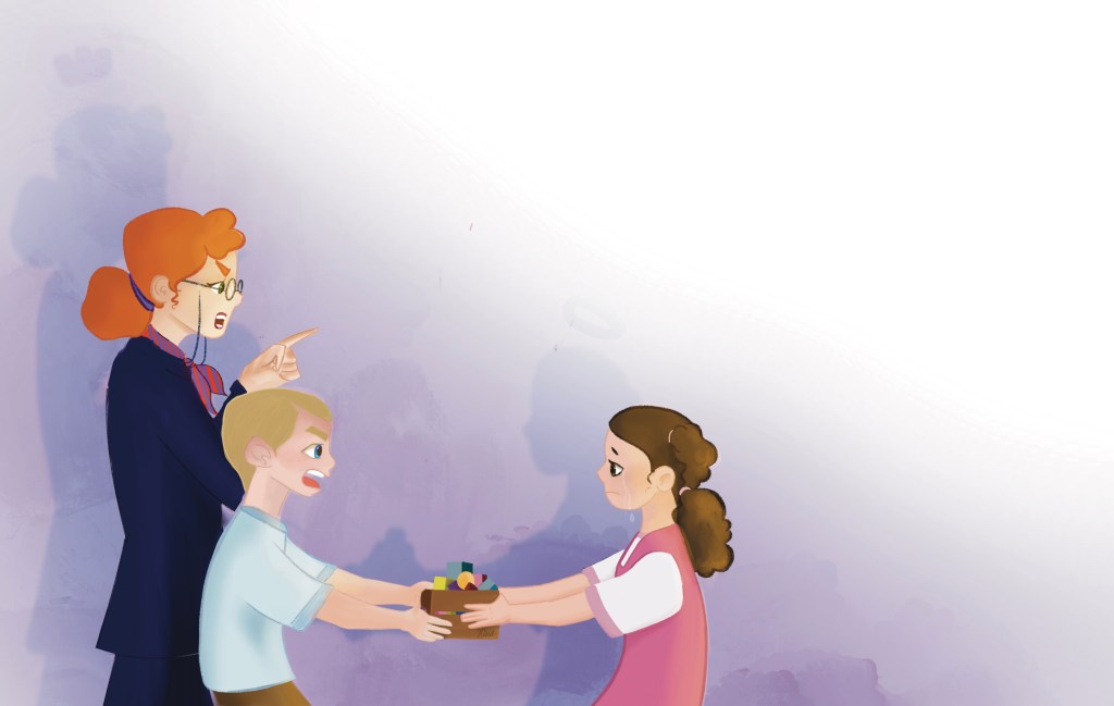 With these unfair and divisive rules, Gili tightened his grip on the classroom. The playground, the most cherished space for all the children, was no exception. Eventually, Gili and his sister declared, “Nobody can come in here unless I say so.” He yelled at his classmates and teased them as they waited at the entrance. The rest of the school had no choice but to obey Gili’s rules.
